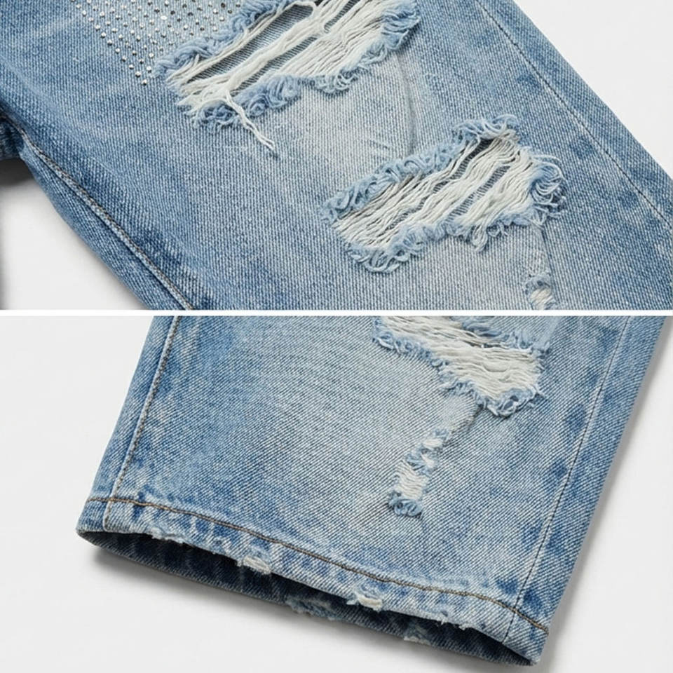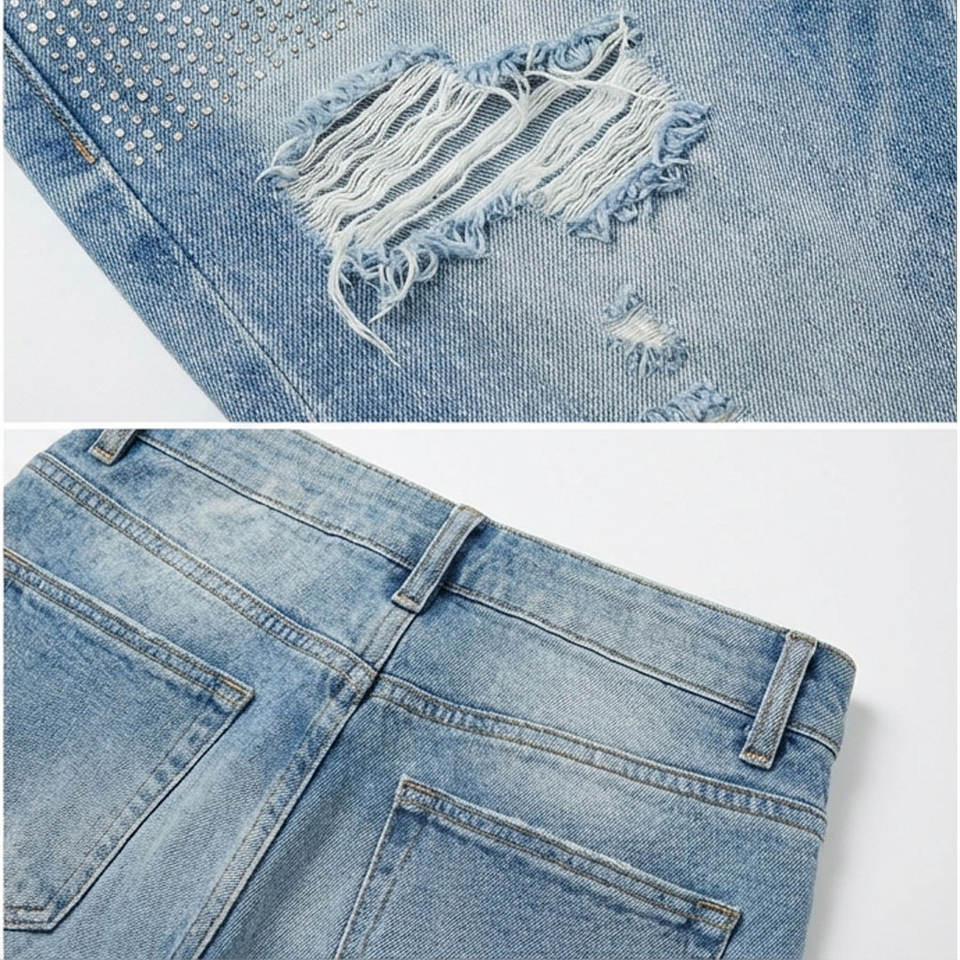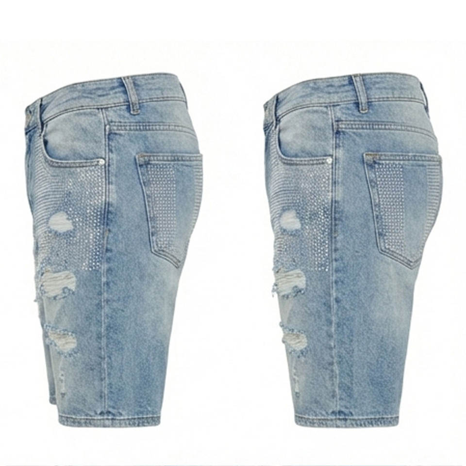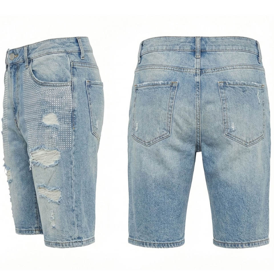 โรงงานผลิตกางเกงยีนส์ขาสั้นประดับคริสตัลแบบ OEM พร้อมบริการพัฒนาตัวอย่างและผลิตจำนวนมากในโรงงาน