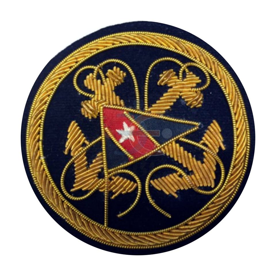 ตราสัญลักษณ์ปักแบบกลม 2 สีทอง คุณภาพสูงจากโรงงานผู้ผลิต (OEM) สำหรับติดเสื้อเบลเซอร์ แบบมีลายปักด้วยด้ายฝรั่งเศส สามารถปรับแต่งได้