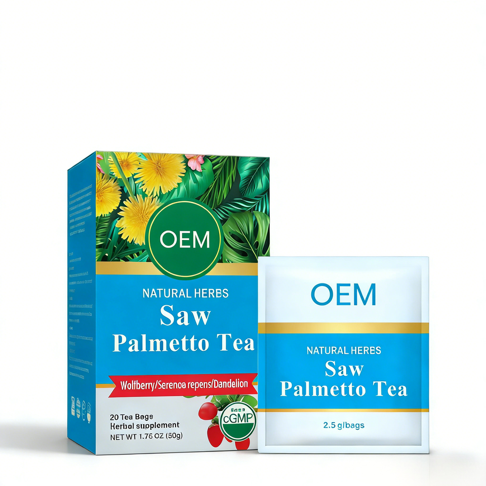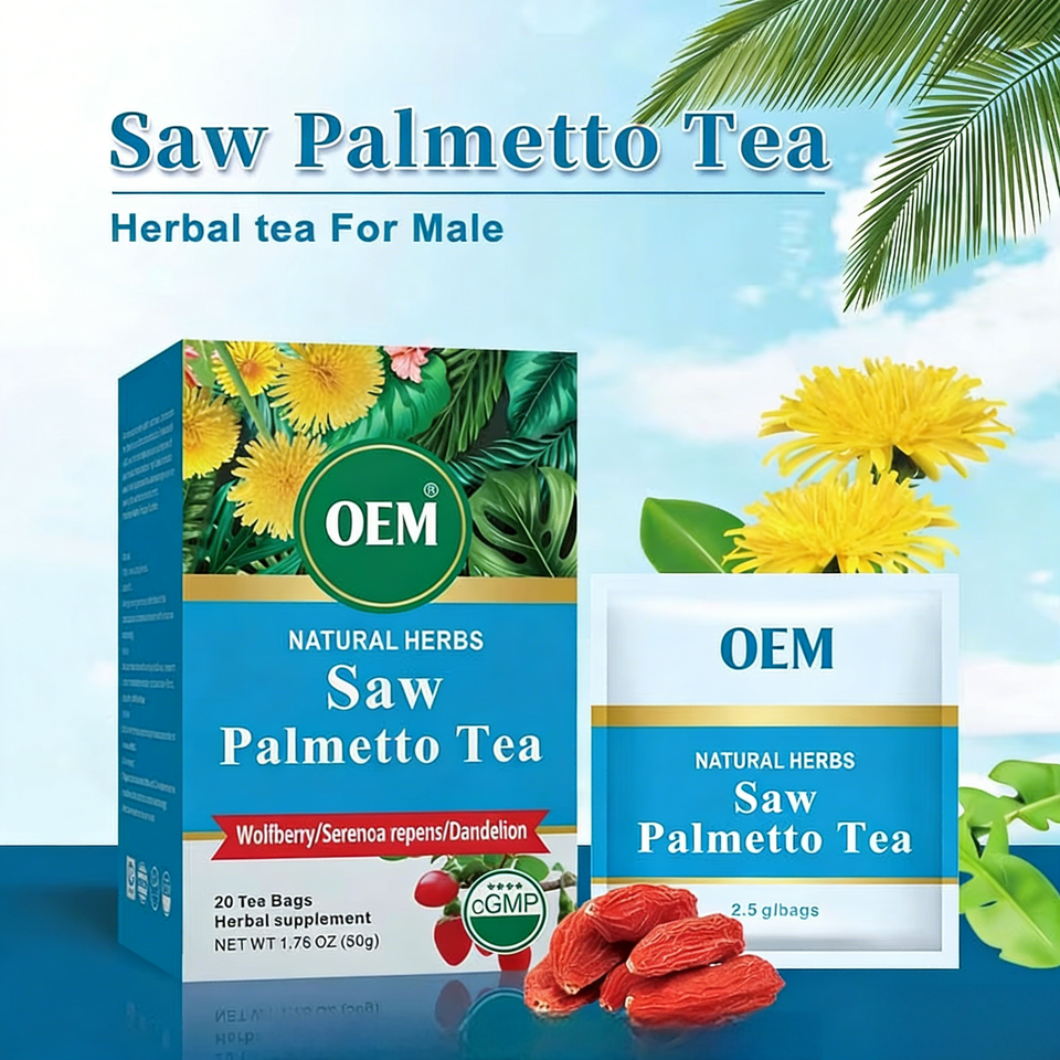 ชาสมุนไพรผสมซอว์พาล์มเมตโตสำหรับผู้ชาย ช่วยบำรุงสุขภาพต่อมลูกหมากและระบบทางเดินปัสสาวะ ได้รับการรับรองมาตรฐาน GMP บรรจุ 20 ซองชา ขนาด 2.5 กรัม ต่อซอง กล่องละ 50 กรัม