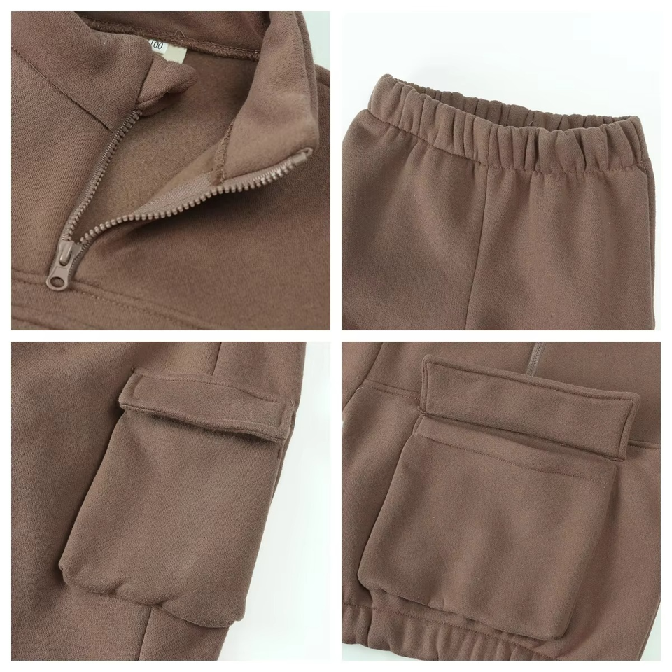 OEM ชุดเสื้อผ้าเด็กผู้ชายใส่ได้ทั้งชายและหญิงชุดวิ่งชุดวอร์มผ้าฟลีซหนาสำหรับฤดูใบไม้ร่วงและฤดูหนาว