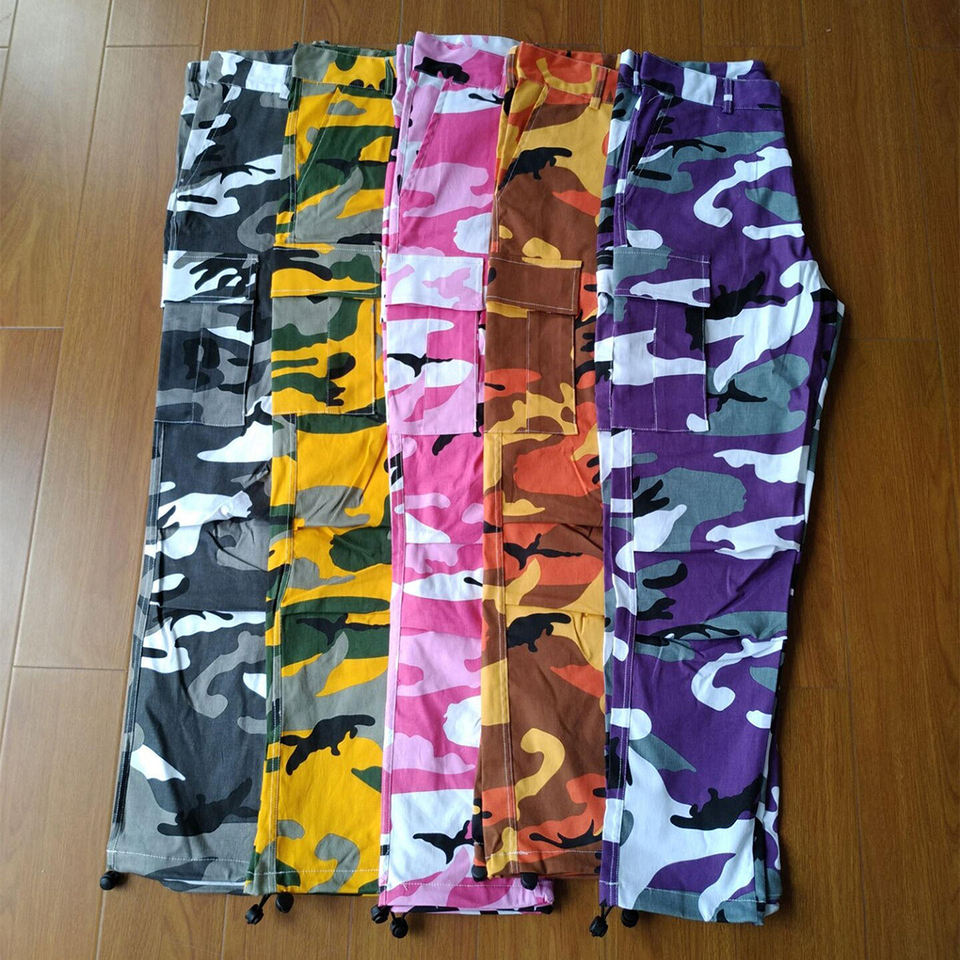 กางเกงโพลีเอสเตอร์พิมพ์ลายพรางหลายสีออกแบบได้ตามต้องการสำหรับกิจกรรมกลางแจ้ง