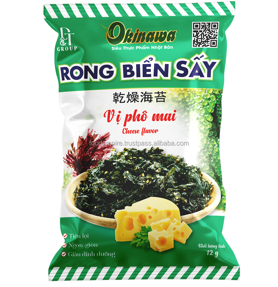 ขนมอบกรอบ12ก. ขนมองุ่นทะเลสาหร่ายโอกินาวา100% สารอาหารจากกระเทียมทอด