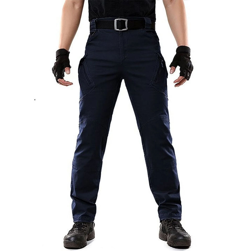 กางเกงคาร์โก้ผู้ชายแบบมีกระเป๋าเอียงระบายอากาศได้ดีมีกระเป๋าทรงยาวถึงเข่าสีฟ้ากรมท่า