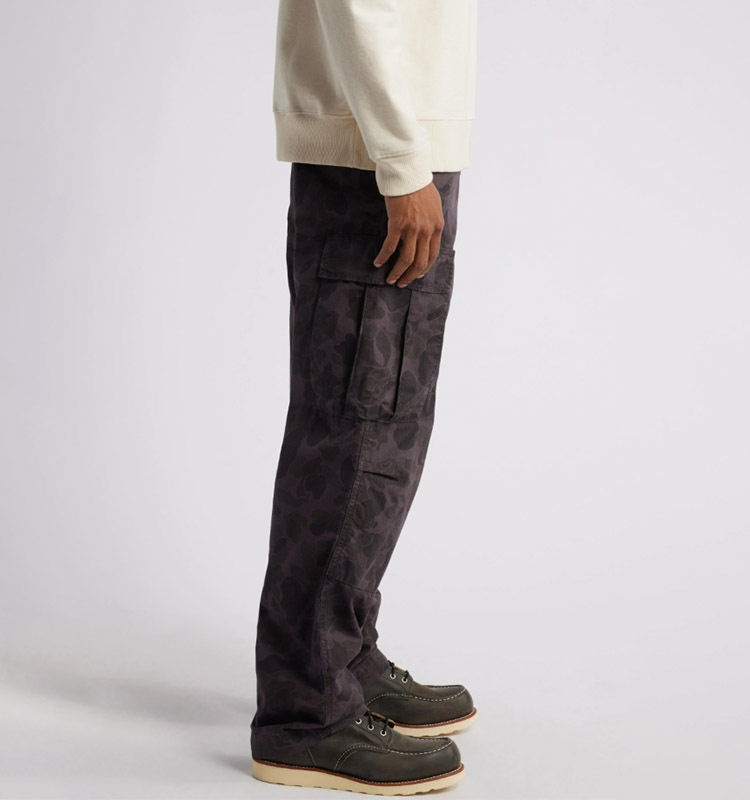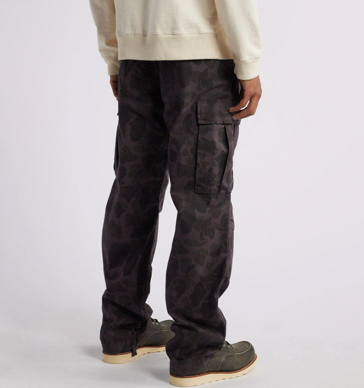 กางเกงคาร์โก้ลายพรางผู้ชายทรงหลวมแบบ OEM สำหรับกิจกรรมกลางแจ้ง มีกระเป๋าหลายช่อง กางเกงแฟชั่นสตรีทพิมพ์ลายพรางแบบซ้อนทับ