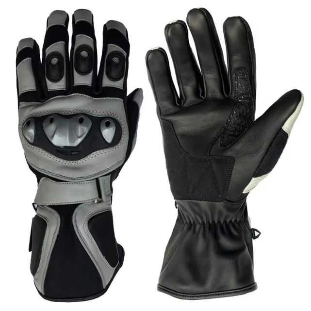 ถุงมือแข่งรถสีดำกันน้ำวัสดุหนังระบายอากาศสำหรับมอเตอร์ไซด์และกีฬาขี่จักรยานสำหรับแข่งมอเตอร์ไซค์