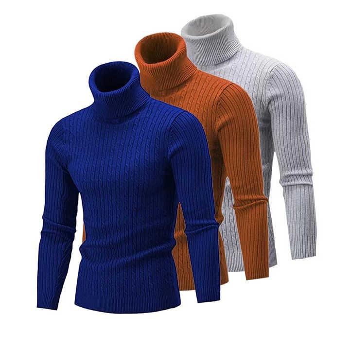 เสื้อสเวตเตอร์คอเต่าของผู้ชายเสื้อสเวตเตอร์ถักแบบสวมหัวสีดำสำหรับฤดูใบไม้ร่วงฤดูหนาว