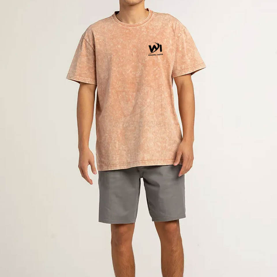 เสื้อยืดผู้ชายผ้ายีนส์ฟอกสี