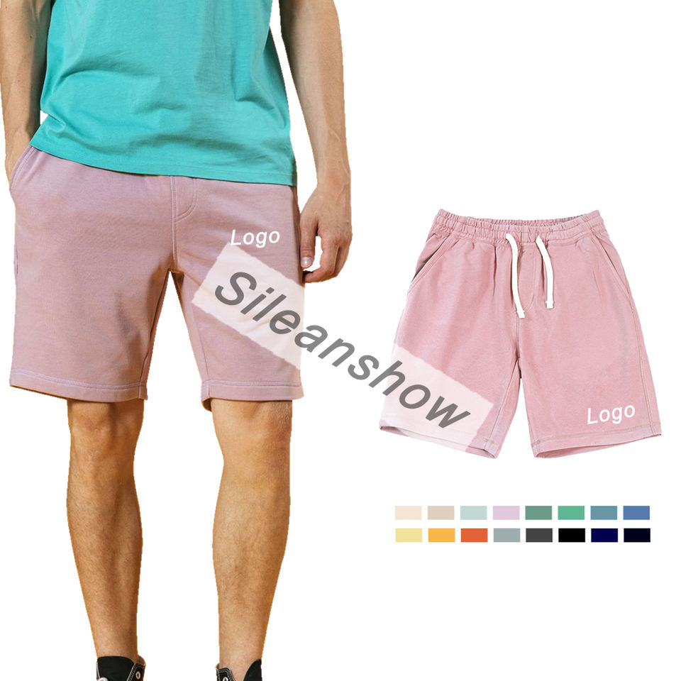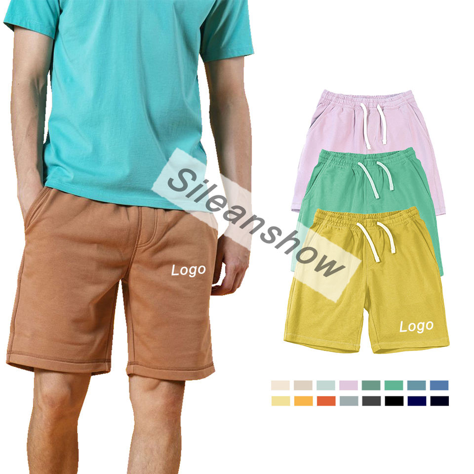 OEM Service Custom Men's Mid Waist Terry Cloth Worsted Fabric Drawstring Closure Breathable Blank Cotton Solid Bermuda Shorts