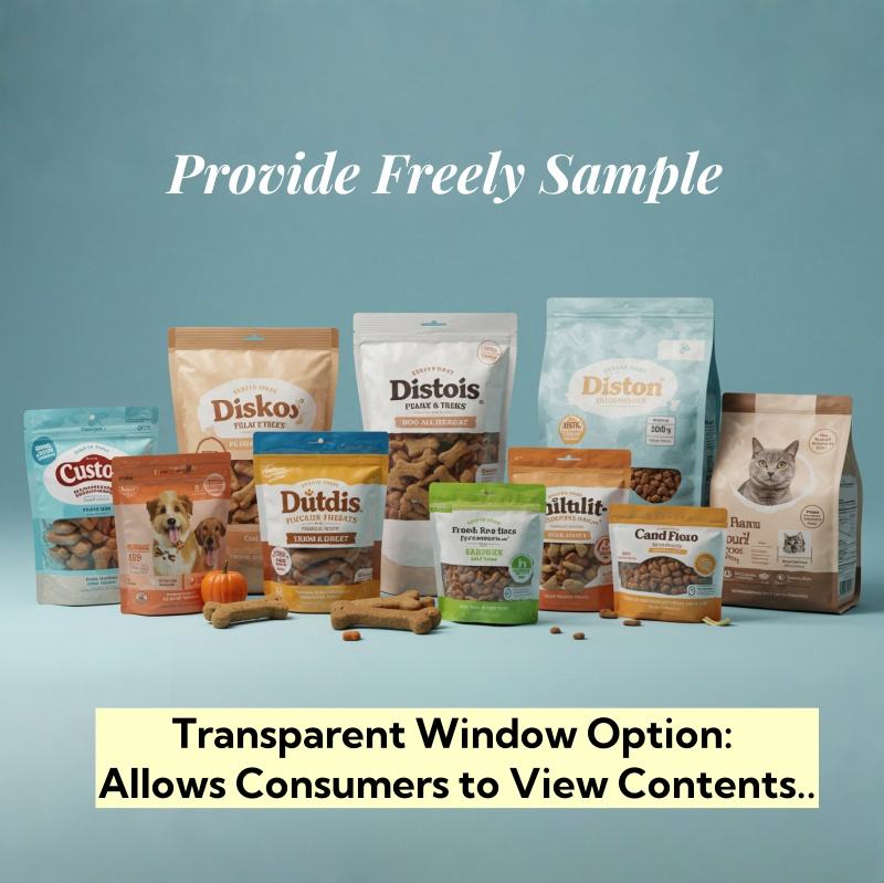 บริการ OEM ถุงใส่อาหารสัตว์เลี้ยงแบบตั้งได้ พิมพ์โลโก้ตามสั่ง เกรดอาหาร สำหรับขนมสุนัข