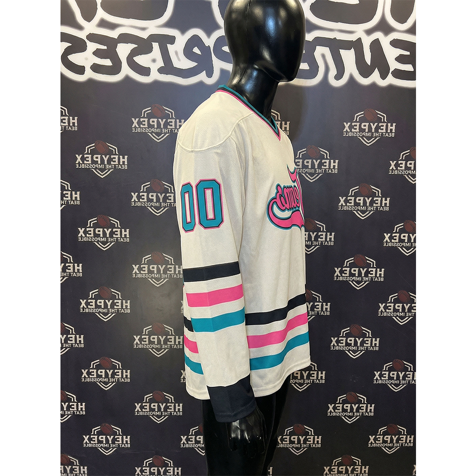 บริการ OEM ชุดยูนิฟอร์มฮอกกี้น้ำแข็งแบบกำหนดเองสำหรับทีม แห้งเร็ว ป้องกันแบคทีเรีย พิมพ์ลายด้วยความร้อน 100% โพลีเอสเตอร์