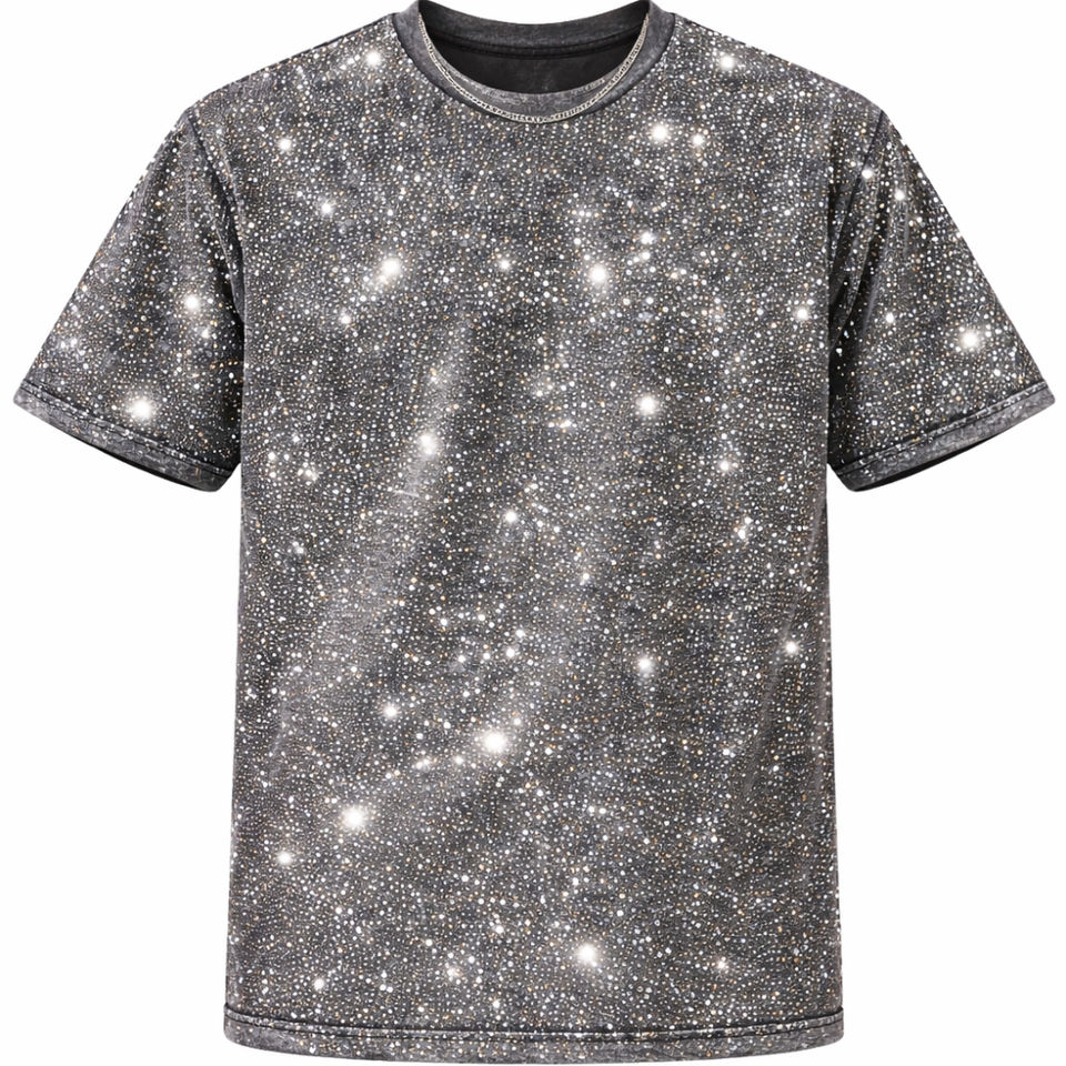 เสื้อยืดผู้ชายประดับพลอยเทียม