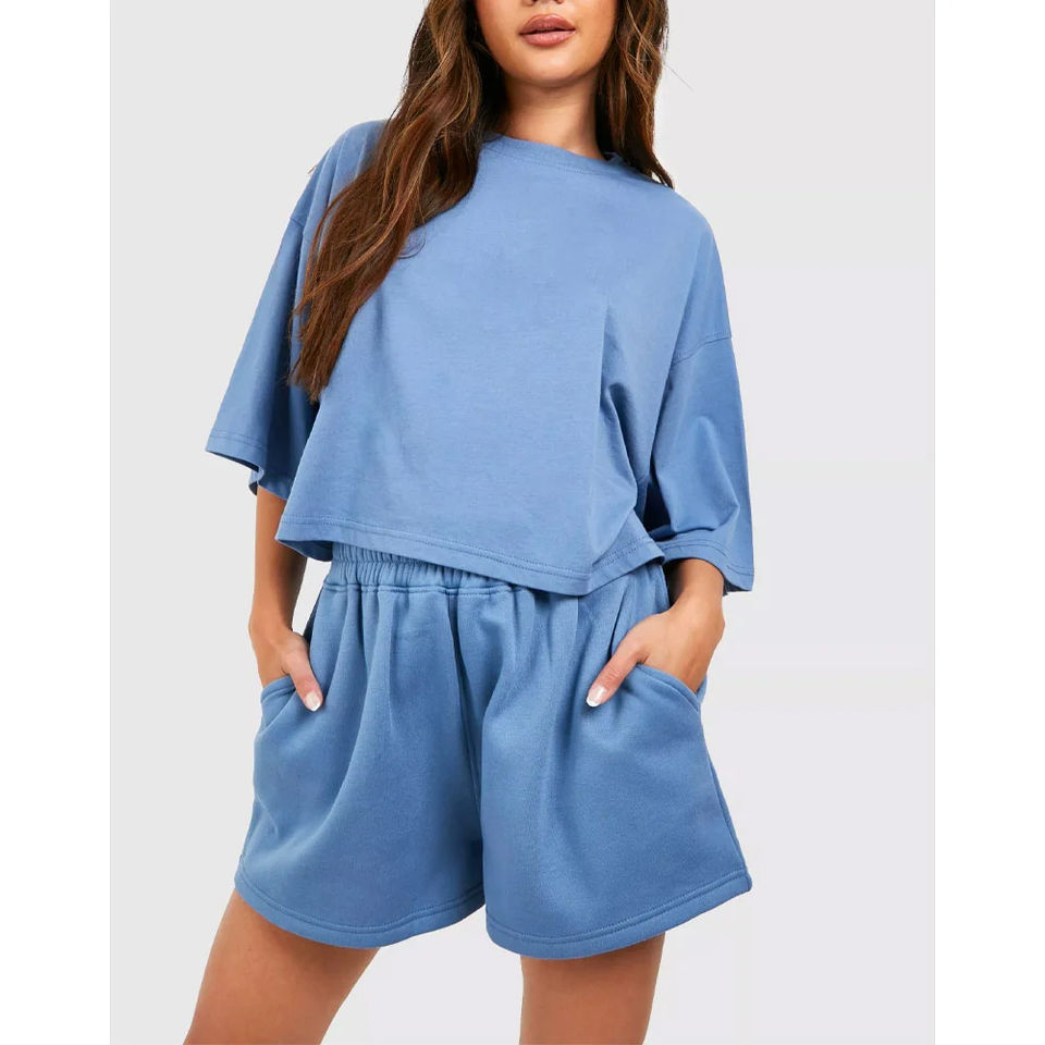 บริการ OEM ชุดเซ็ตฤดูร้อนสำหรับผู้หญิง สีพื้น 2 ชิ้น ชุดลำลอง ระบายอากาศได้ดี เป็นมิตรกับสิ่งแวดล้อม เนื้อผ้าหนา