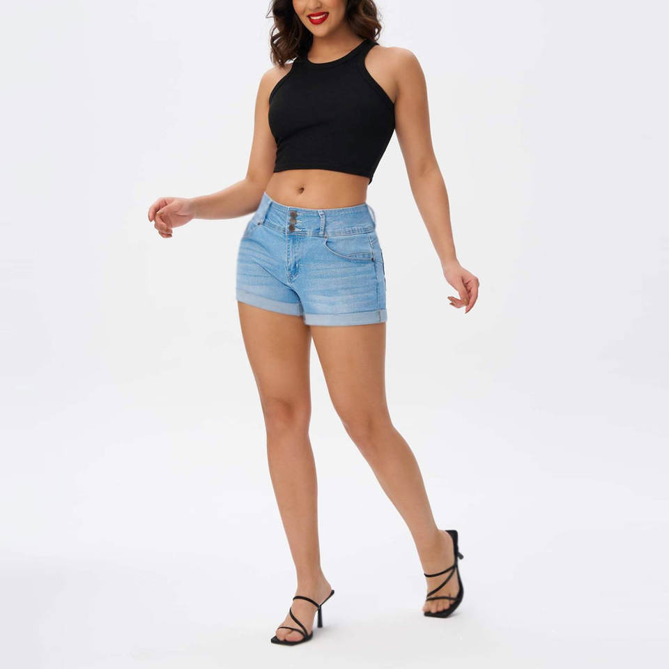 กางเกงขาสั้นผ้าเดนิมเอวสูงสำหรับผู้หญิงกางเกงขาสั้นผ้าเดนิมสไตล์แฟชั่นสำหรับผู้หญิง