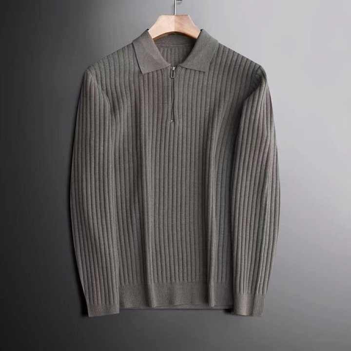 เสื้อสเวตเตอร์ถักแบบสวมหัวสำหรับผู้ชายซิปครึ่งคอโปโลแบบถักพร้อมโลโก้ตามสั่ง