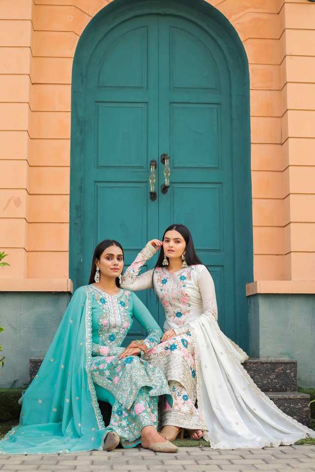 Heavy Embroidery 5 mm Sequence Work With Diamond Hand Work