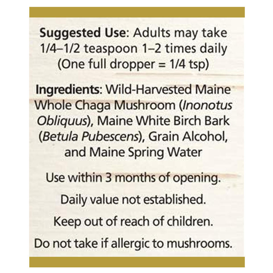 ส่วนผสมหลัก:Maine Chaga สารสกัดจากเปลือกไม้เบิร์ชหยดของเหลว