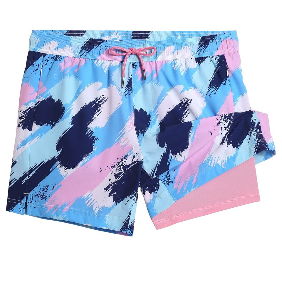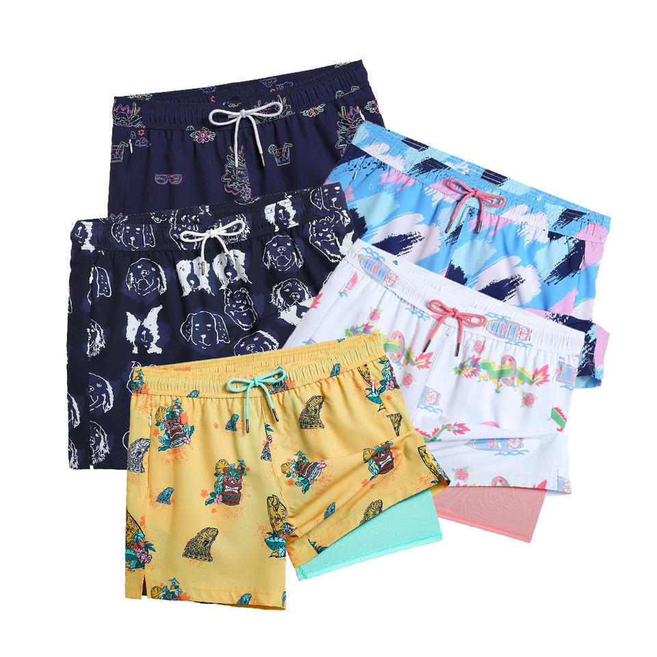 กางเกงขาสั้นชายหาดผู้ชายแบบ OEM พร้อมกระเป๋า แห้งเร็ว 7 นิ้ว กระชับสัดส่วน สีและโลโก้สั่งทำได้