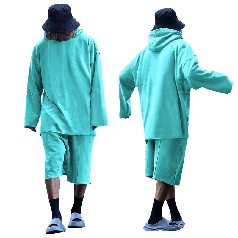 ชุดเซ็ตเสื้อฮู้ดดี้และกางเกงขาสั้นลำลองสำหรับผู้ชาย บริการ OEM ผลิตจากผ้าโพลีเอสเตอร์ คุณภาพสูง ระบายอากาศได้ดี เหมาะสำหรับฤดูใบไม้ผลิ