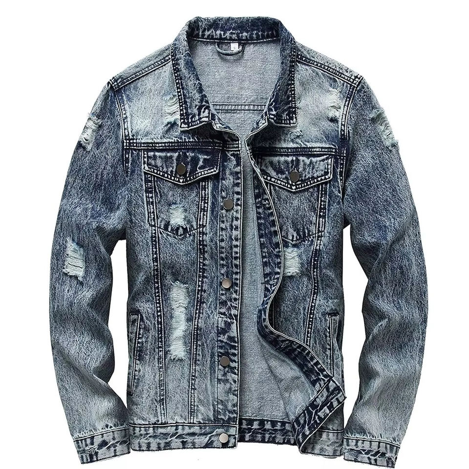 แจ็กเก็ตยีนส์สำหรับผู้ชายเสื้อแจ็กเก็ตผ้าเดนิมติดกระดุมกันลมสำหรับผู้ชาย