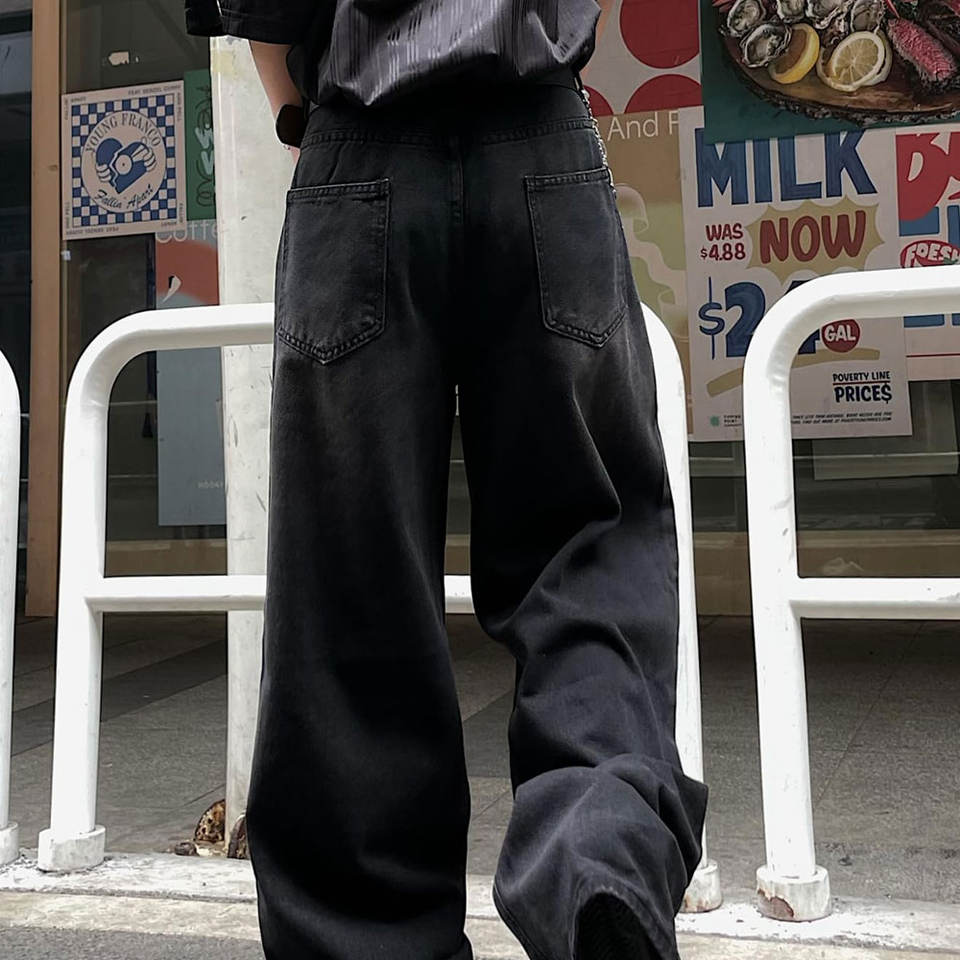 กางเกงยีนส์ผู้ชายทรงโอเวอร์ไซส์ ทรงปกติ สไตล์สตรีทแวร์ สำหรับฤดูร้อน สีพื้น ผ้าฝ้าย 100% สีเข้ม สำหรับกิจกรรมกลางแจ้ง บริการ OEM