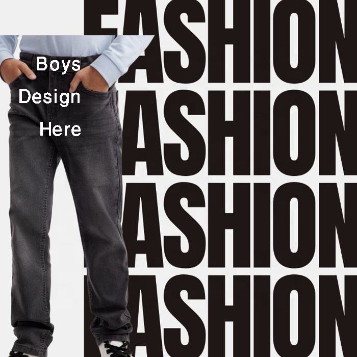 กางเกงยีนส์เอวยางยืดรัดข้อมือสำหรับเด็กผู้ชายมีกระเป๋ากางเกงสินค้า