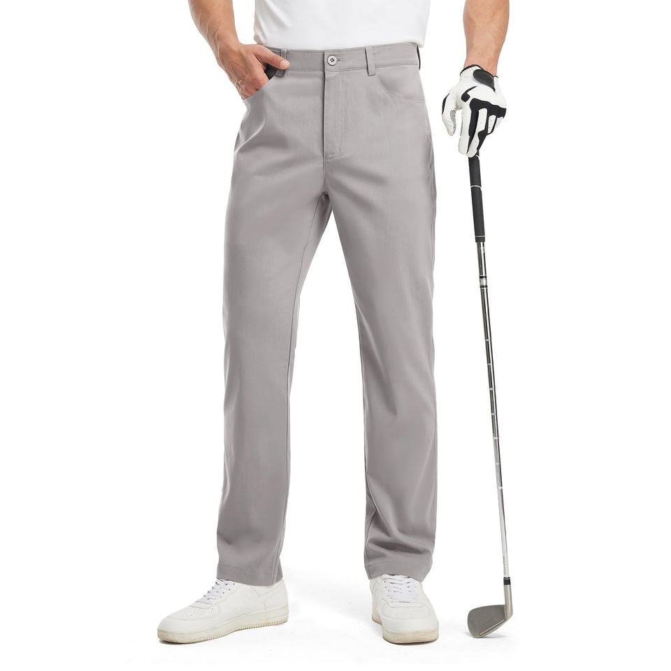 บริการ OEM กางเกงกอล์ฟผ้าแคนวาสทรงตรงเอวกลางแบบลำลองรุ่นใหม่ น้ำหนักเบา สำหรับผู้ชาย กางเกงกอล์ฟทรงลำลองยืดหยุ่นได้