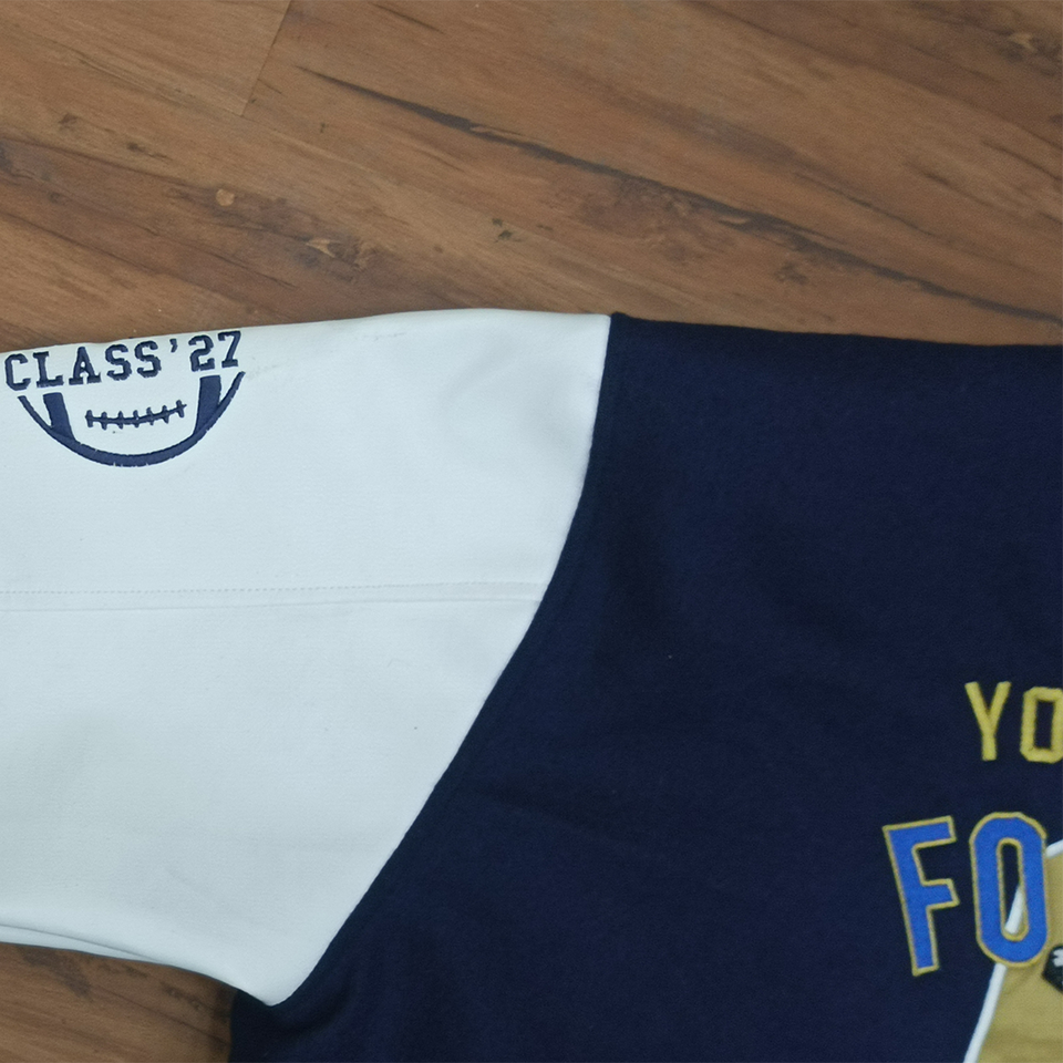 แจ็กเก็ตทีมโรงเรียนสำหรับผู้ชายขนาดพลัสไซส์เสื้อแจ็คเก็ตทีมมหาวิทยาลัยแบบกระดุมเต็มคอสั่งโลโก้ได้ตามต้องการ