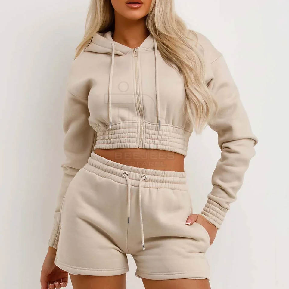 ชุดวอร์มสั้นสำหรับผู้หญิงชุดครอปแห้งเร็วผลิตตามสั่ง