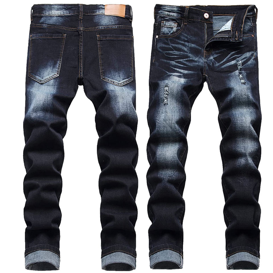กางเกงยีนส์ทรงสลิมฟิตสำหรับผู้ชายกางเกงยีนส์ฟอกสีทรงสกินนี่สไตล์สตรีทสูง