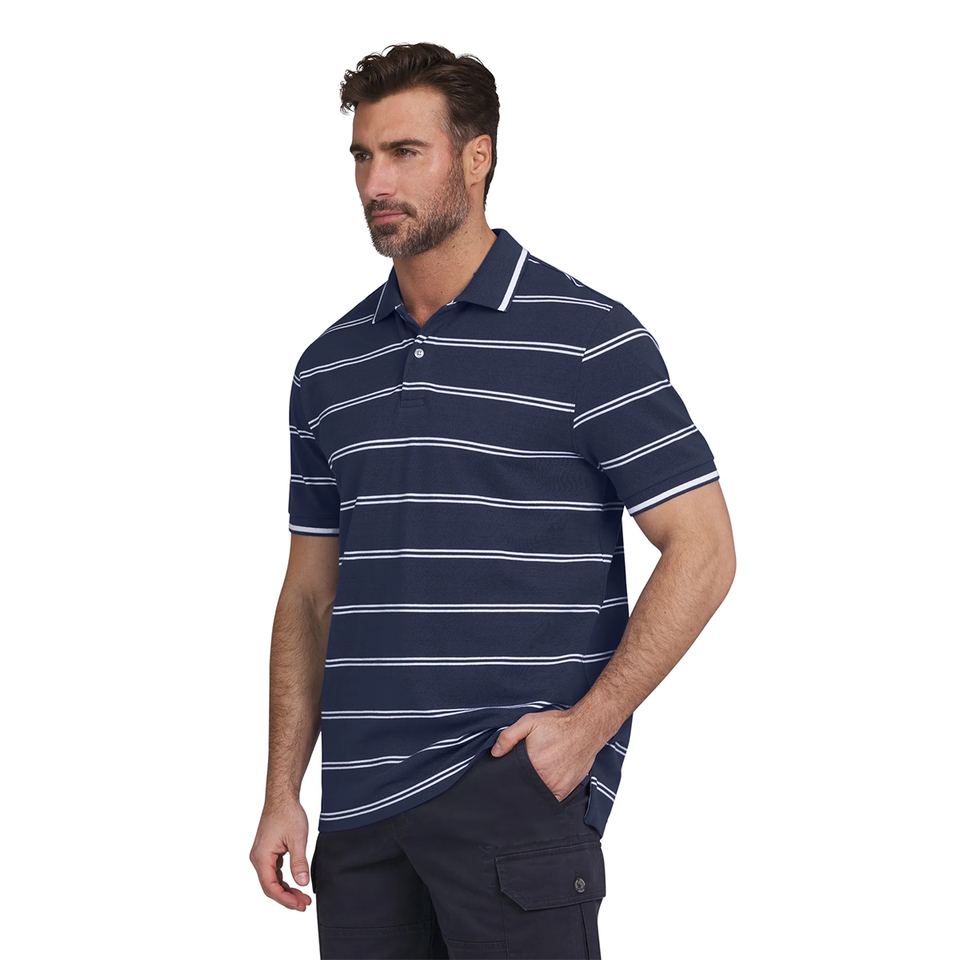 เสื้อโปโลสำหรับผู้ชายฤดูร้อน OEM เสื้อเชิ้ตลายทางเข้ารูปแขนสั้นใส่สบายเนื้อผ้าถักไม่เป็นขน