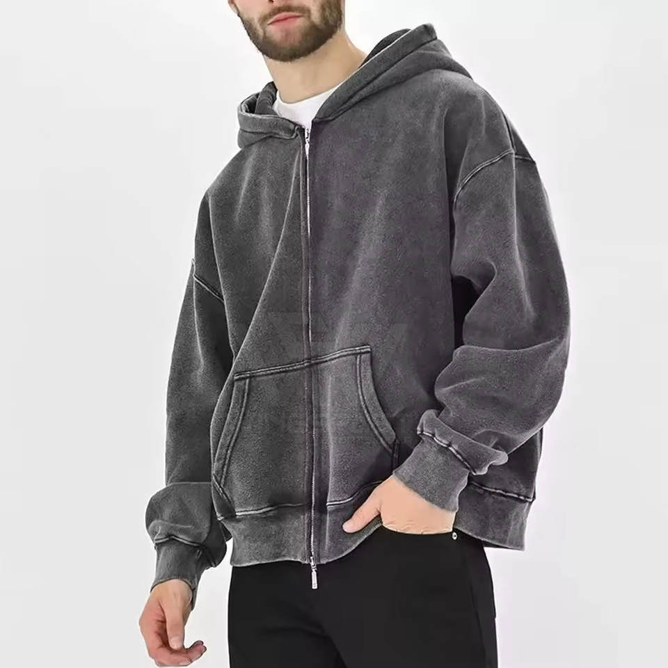 ชื่อผลิตภัณฑ์:เสื้อฮู้ดผู้ชายซักกรดมีซิป
