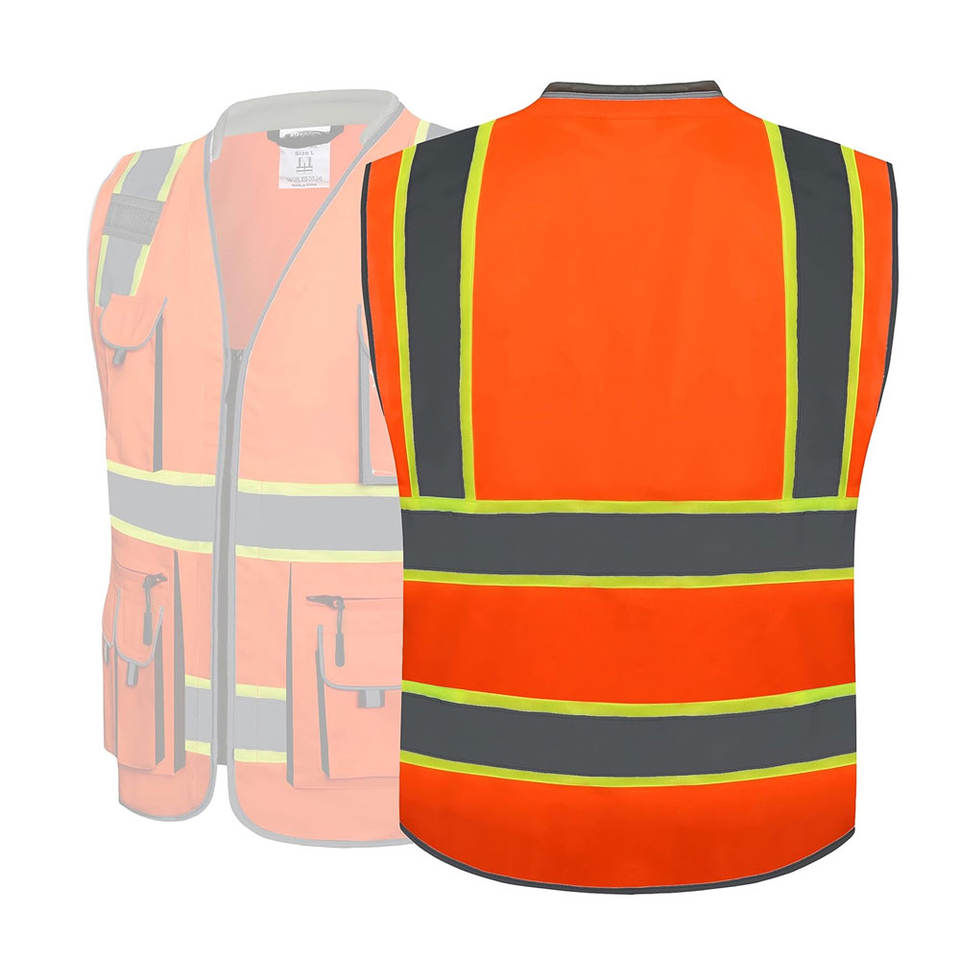 เสื้อกั๊กนิรภัย Hi VIS เสื้อกั๊กใส่สัมภาระสไตล์ไม่เหมือนใครเป็นมิตรต่อสิ่งแวดล้อม