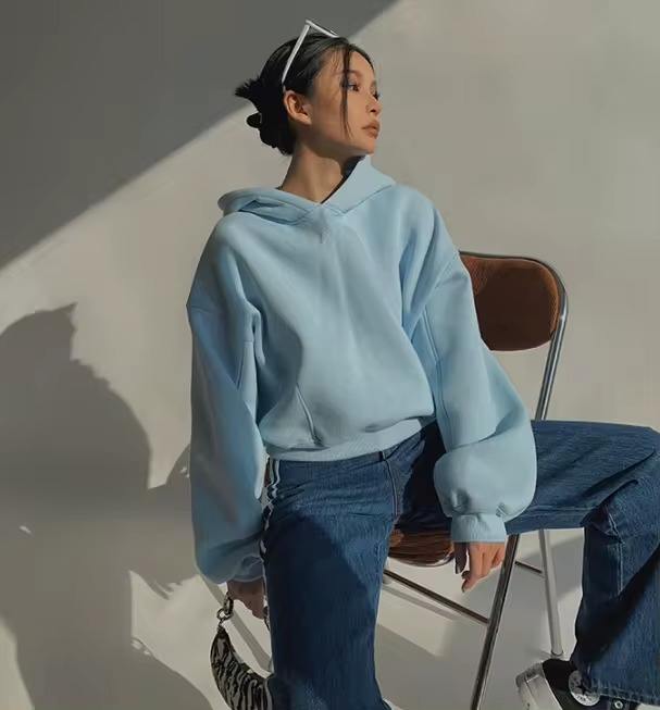 บริการ OEM เสื้อฮู้ดดี้ผู้หญิงแบบสวมหัว ผ้าถักพิมพ์ลายหรือสีพื้น โลโก้ด้านหน้า ระบายอากาศได้ดี ทรงครอปเอวสูง ผ้าฝ้าย 100% สำหรับฤดูหนาว