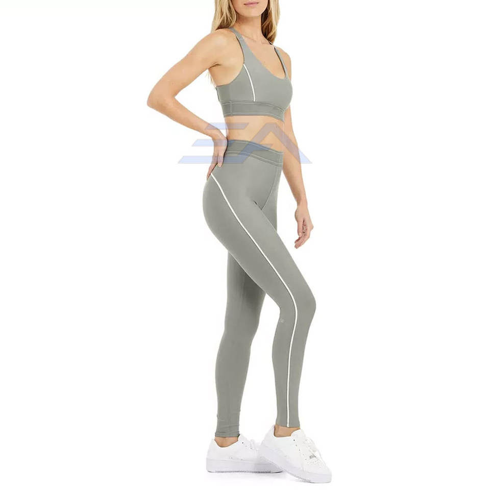 บริการ OEM ชุดโยคะผู้หญิงสไตล์ล่าสุด คุณภาพสูง ออกแบบตามสั่ง ด้านหน้าเรียบ ขอบเอวยางยืด 2 ชิ้น ระบายอากาศได้ดี เป็นมิตรกับสิ่งแวดล้อม