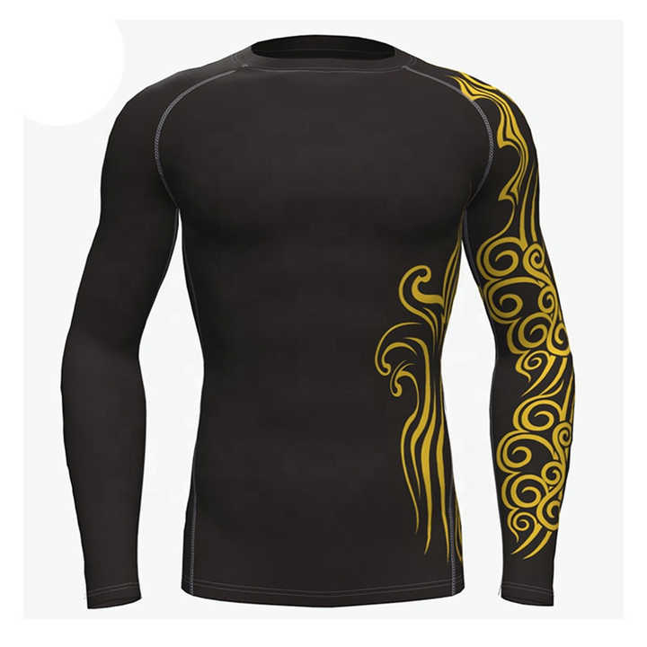 บริการ OEM เสื้อรัดกล้ามเนื้อแขนยาวสำหรับผู้ชาย ระบายอากาศได้ดี แห้งเร็ว ทรงเข้ารูป ออกกำลังกายได้ ปรับแต่งสี/ลายด้านหน้าได้ตามต้องการ