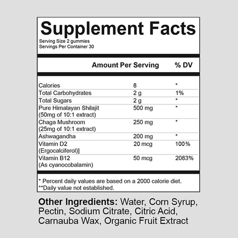 แคปซูลสารสกัดชิลลาจิต OEM ชิลลาจิตเรซินจากเทือกเขาหิมาลัย ชิลลาจิตแบบกัมมี่เพื่อเสริมพลังงานและบำรุงสมอง