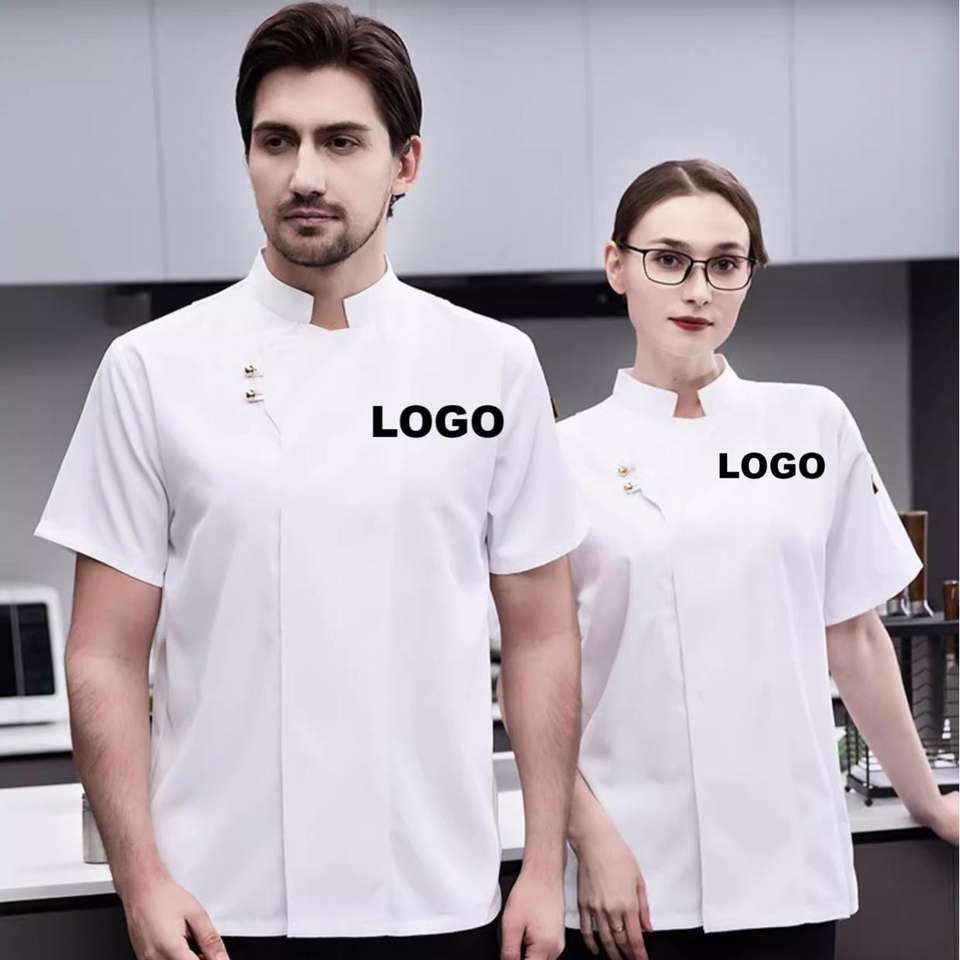 เครื่องแบบเชฟแขนสั้นแห้งเร็วชุดทำงานในครัว10ชิ้นตาข่ายระบายอากาศได้ดีปรับแต่งได้สำหรับโรงแรม