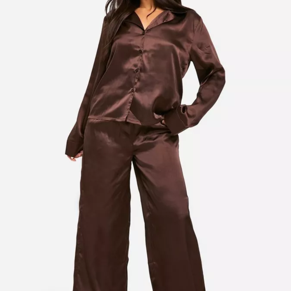 ชุดนอนผ้าซาตินแขนยาวสำหรับผู้หญิง ยี่ห้อ OEM เนื้อผ้านุ่ม ระบายอากาศได้ดี เอวยืดหยุ่น ใส่ได้ทุกฤดู ความยาวเต็มตัว