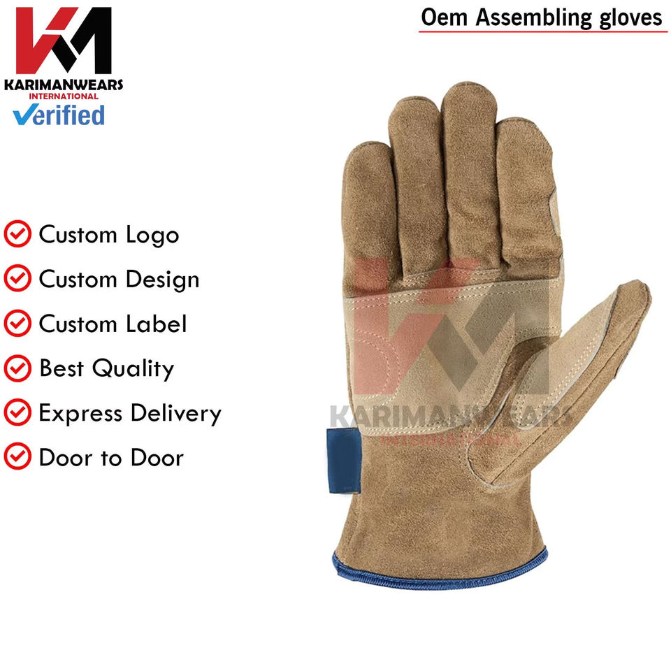 ถุงมือทำงานหนังแท้แบบ OEM สำหรับช่างก่อสร้างและช่างยนต์ โรงงานผลิตถุงมือทำงานหนังแท้พร้อมโลโก้ OEM แบบกำหนดเอง