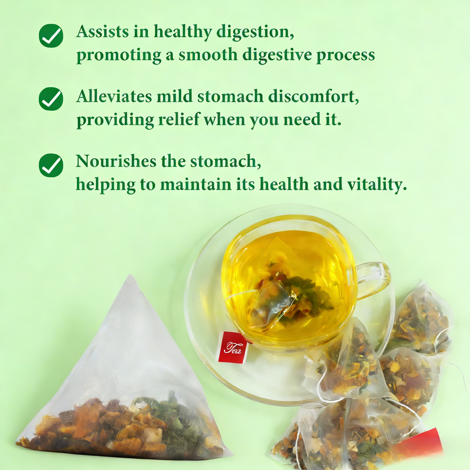 ชาสมุนไพรบำรุงกระเพาะ OEM ชาเพื่อสุขภาพ ผสมเหอเรี่ยม ลิลแลค พุทรา ออร์แกนิค ธรรมชาติ มังสวิรัติ ปราศจาก GMO บรรจุ 20 ซองชา ซองละ 5 กรัม ต่อกล่อง