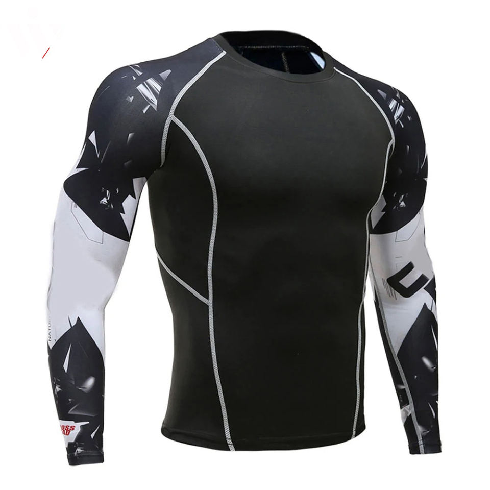 เสื้อรัดรูปสไตล์ซับลิเมตสำหรับผู้ชายเสื้อออกกำลังกายรัดรูปยืดได้เสื้อกีฬาฟิตเนสเสื้อตัวป้องกันผดผื่นสำหรับผู้ชาย