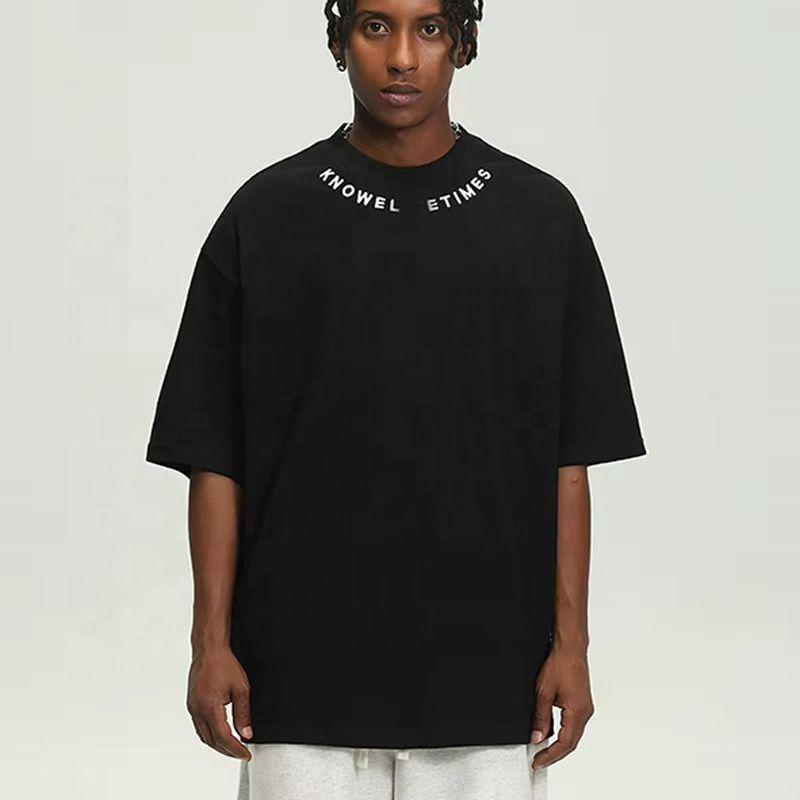 เสื้อยืดโอเวอร์ไซส์ปักลายสไตล์สตรีทแวร์แบบดรอปไหล่สำหรับผู้ชาย ออกแบบเองสำหรับฤดูร้อน OEM