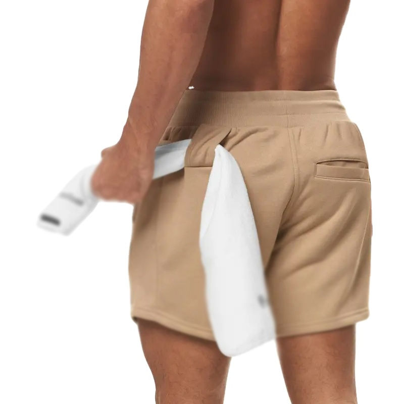 กางเกงขาสั้นออกกำลังกายผู้ชายสไตล์สตรีทแฟชั่นฤดูร้อน OEM ผลิตจากโพลีเอสเตอร์ 100% ลายเรียบ ทอแบบไม่ถักทอ ยืดหยุ่นได้ ระดับกลางลำตัว