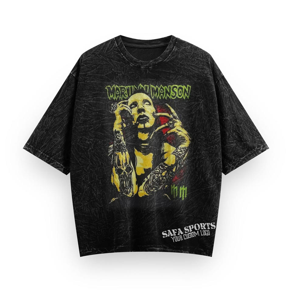 เสื้อยืดผู้ชายผ้าฝ้าย100% สีดำวินเทจฟอกสีกรดพิมพ์ลายโลโก้ทรงหลวมไซส์ใหญ่พิเศษฤดูร้อน