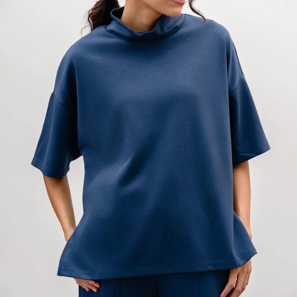 เสื้อยืดคอสูงทรงบ็อกซี่ สไตล์ลำลอง ผ้าเรียบสีพื้น ย้อมเร็ว น้ำหนักเบา สำหรับผู้หญิง แฟชั่นฤดูร้อน