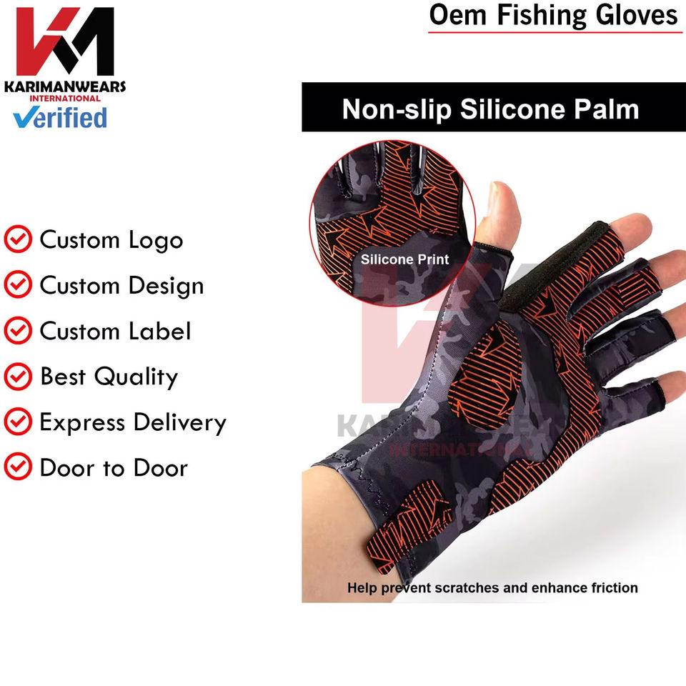 ถุงมือตกปลา OEM ป้องกันแสงแดด ผลิตจากผ้าแห้งเร็ว ขายส่งแบบกำหนดเอง OEM ถุงมือตกปลาป้องกันการลื่น จัดส่งเร็วทั่วโลก