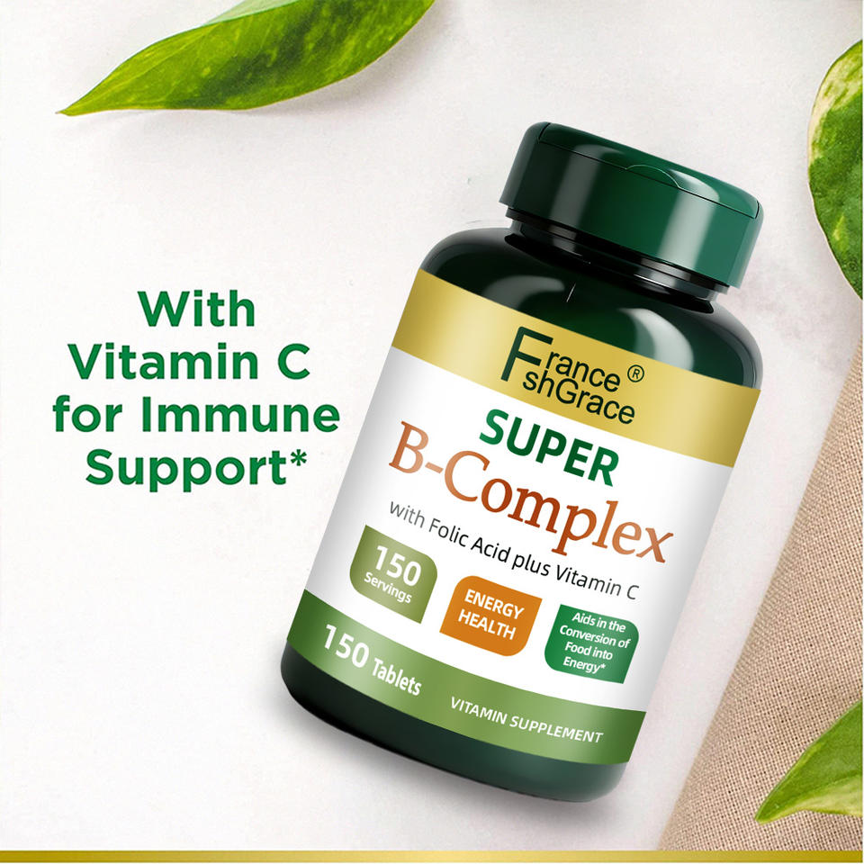 ผู้ผลิตอาหารเสริม OEM ซูเปอร์บีคอมเพล็กซ์ พร้อมวิตามินซี กรดโฟลิก เสริมภูมิคุ้มกันและพลังงาน 150 เม็ด ซูเปอร์บีคอมเพล็กซ์