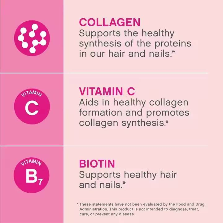 ประโยชน์ของผลิตภัณฑ์:เจริญเติบโตของเส้นผม, ผิวกระจ่างใส, การเจริญเติบโตของเล็บ, รองรับกระดูกและข้อต่อ