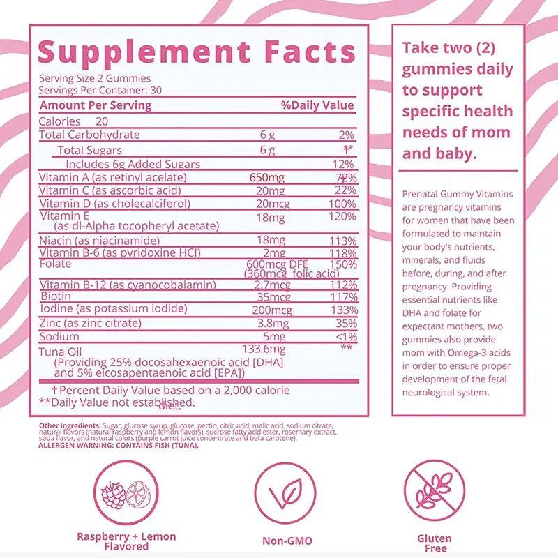 วิตามินเสริม OEM โพรไบโอติกส์ วิตามินรวมสำหรับการเจริญพันธุ์ วิตามินกัมมี่เสริมสุขภาพก่อนคลอดสำหรับผู้หญิง