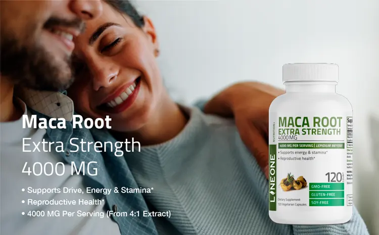 อาหารเสริม OEM สารสกัดจากรากมาคา (เลพิเดียม เมเยนี) สำหรับผู้ใหญ่ แบบแคปซูล สำหรับผู้ทานมังสวิรัติ 120 แคปซูลต่อขวด